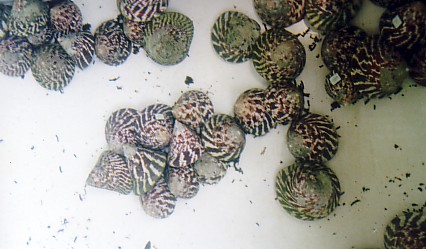 Trochus niloticus, the commercial top shell placed in tank for induction of spawning